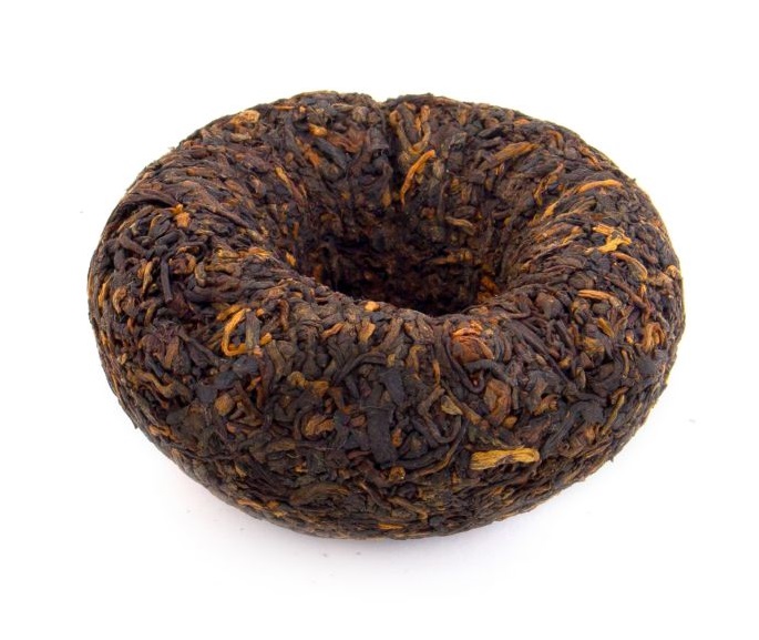Цвет готового настоя темный красно-коричневый. Данный пуэр отлично раскрывается в чайнике из исинской глины и выдерживает 6 полноценных проливов.