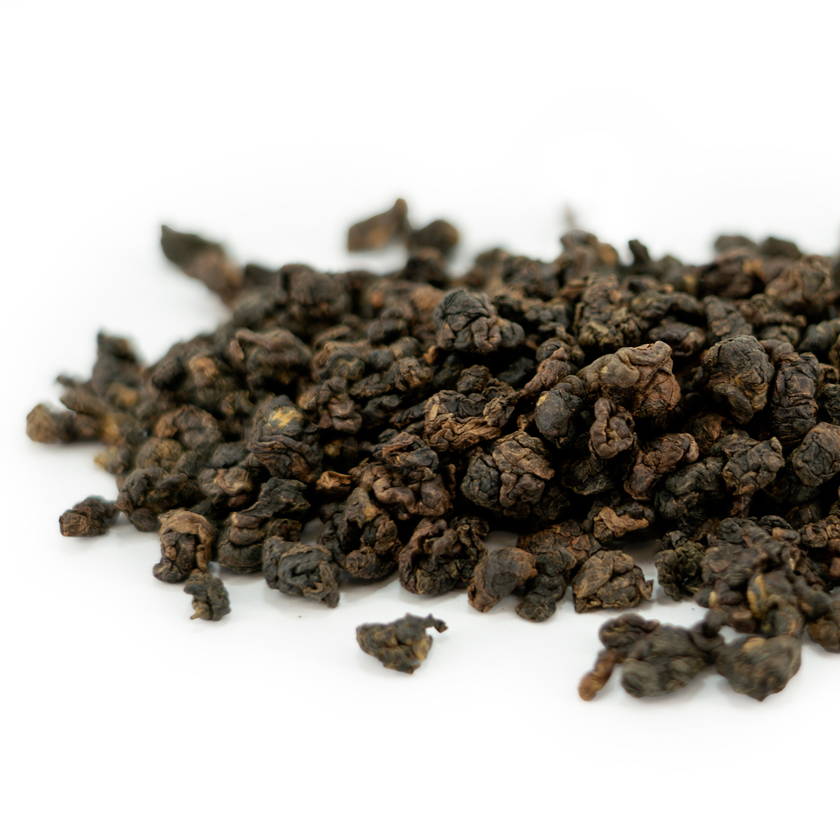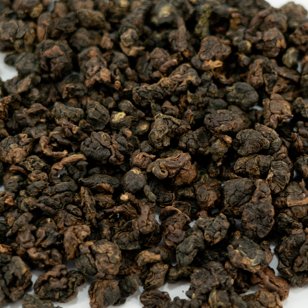 - Wygląd: Liście herbaty są ciemnobrązowe i zwinięte w zwarte kulki.
