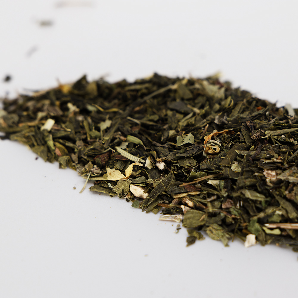 SKŁADNIKI: herbata zielona Sencha, ostrożeń ziele, świetlik ziele, jeżyna liść, malina owoc, pięciornik kurze ziele, róża owoc, łopian korzeń, dzięgiel liść, pokrzywa liść, nagietek płatki, przytulia ziele, mniszek korzeń