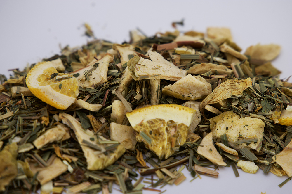 Składniki: jabłko suszone (jabłko, substancja konserwująca E223), trawa cytrynowa (29%), skórka cytryny, pomarańcze liofilizowane, mięta, imbir suszony (3%), kwiat słonecznika, naturalny aromat.